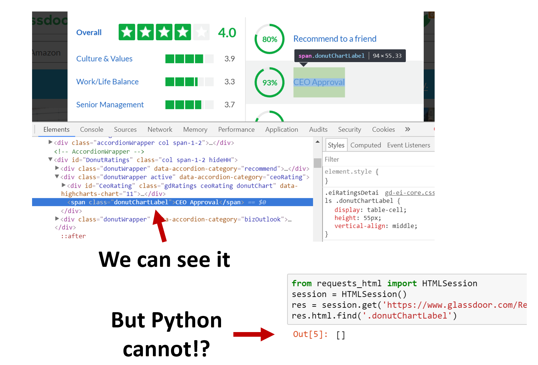 Some webpages rely heavily on JavaScript to load in data-elements: